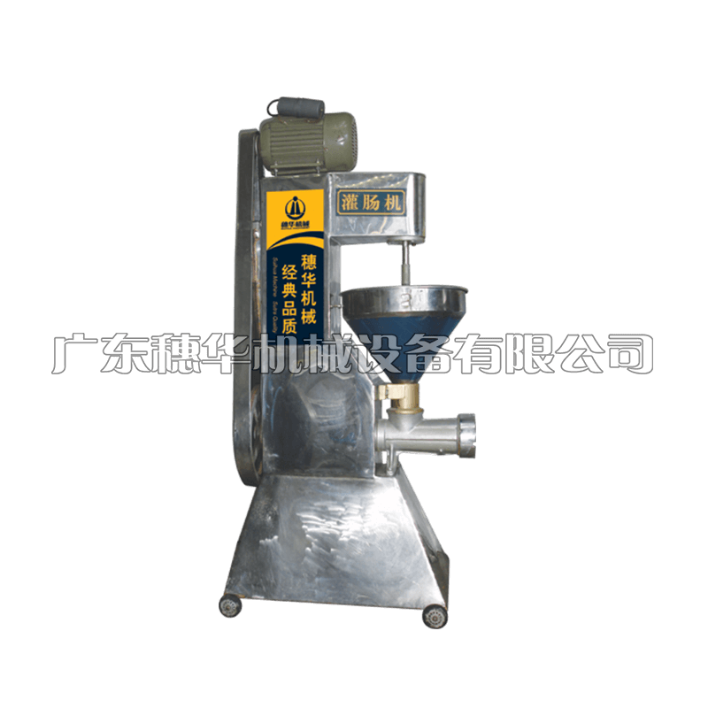 廣東穗華牌自動灌腸機適用于灌制各種香腸、紅腸、臘腸及糊狀物食品。該灌腸機械設備使用敞開式不銹鋼料斗,適用于連續(xù)添加物料;同時該灌腸機器具有不破壞物料成份,達到保持良好品質(zhì)的優(yōu)點。
